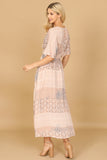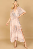 DEEP NECK DOLMAN SLEEVE SIDE SLIT PRINTED MAXI DRESS