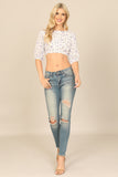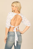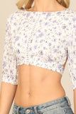 FLORAL HALF SLEEVE TIE BACK CROP TOP