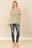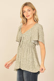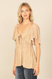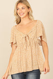 Elevate your style with our FRONT CUT-OUT KNOTTED TIE DETAIL PRINTED TOP. The unique front cut-out and knotted tie detail add a touch of elegance to this printed top. Embrace comfort and fashion with this versatile piece.