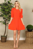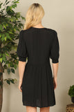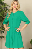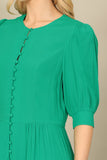 Half Puff Sleeve Button-Down Solid Dress