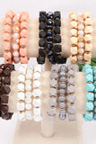 This bracelet will add trendy elegance to your wardrobe. It features multi-colored beads. Easy to slip on and off, to wear solo or stacked!