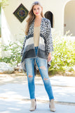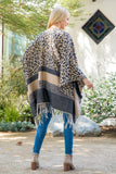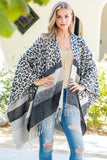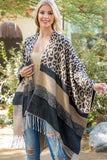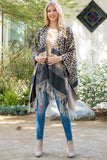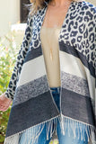 STRIPE LEOPARD FRINGE KIMONO WRAP