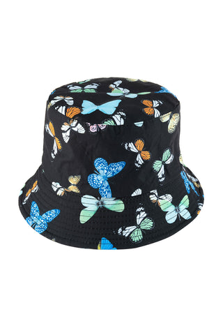 BUTTERFLY PRINT DOUBLE-SIDE-WEAR REVERSIBLE BUCKET HAT