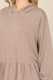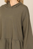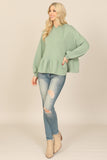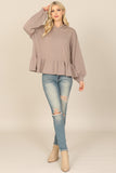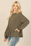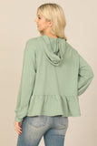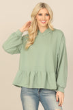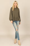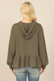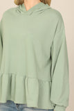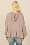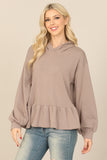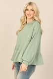 HOODIE LONG PUFF SLEEVE RUFFLED HEM PEPLUM TOP