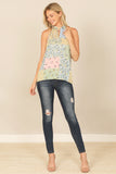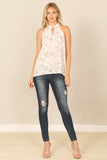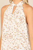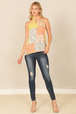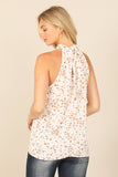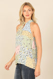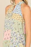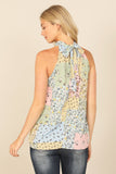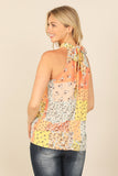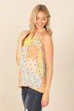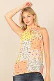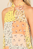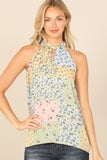 KEYHOLE HALTER NECK WITH TIE COLOR BLOCK FLORAL TOP