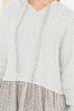• Leopard Hem Textured Hoodie Top