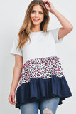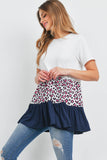 A soft half sleeve 2 layer ruffled hem featuring a round neckline, half cut sleeves, printed pattern, and a subtle swing silhouette. Just slip into your favorite sandals or wedges and you’re ready to take on your day in confident style.