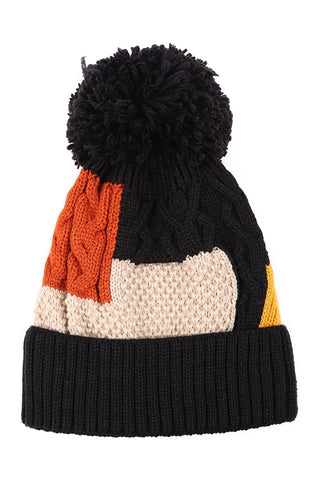 PATCH FLEECE POMPOM BEANIE ACRYLIC