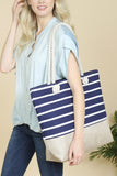 NAVYTHICK WHITE HORIZONTAL STRIPE TOTE BAG