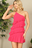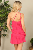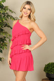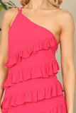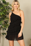 Experience effortless style and elegance with our One Shoulder Ruffle Detail Mini Dress. Featuring a delicate ruffle detail and a flattering one shoulder design, this dress is perfect for any occasion. Look and feel your best with this must-have addition to your wardrobe.