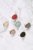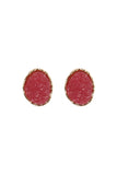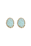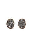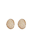 Make a glamorous statement with these stunning druzy stone post earrings. They feature an oval shape and a beautiful shimmer that sparkles in the light. These earrings are the perfect way to add a touch of glamour to any outfit.