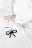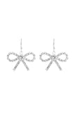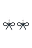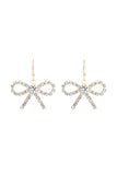 RHINESTONE BOW DANGLE FISH HOOK EARRINGS