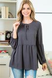 Ribbon Keyhole Detail Neckline Puff Sleeve TOP