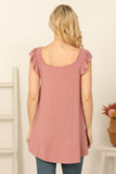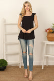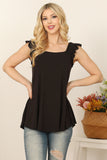 This Ruffle Sleeveless Solid Top features a unique ruffle design that adds texture and movement to a classic, sleeveless silhouette. Made of a soft, high-quality fabric, this top is both comfortable and stylish, making it a must-have addition to any wardrobe. Perfect for dressing up or down, this top will elevate any outfit with its chic and sophisticated look.