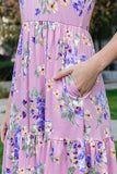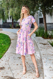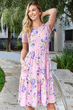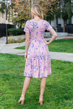 SHORT SLEEVE FLORAL KNEE LENGTH TIERED DRESS