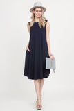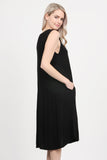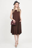 A knit knee length dress featuring a round neckline, sleeveless cut, on-seam side pockets and a fit-n-flare silhouette. Super cute and stylish perfect for the spring and summer season. Pair along with your favorite sandals/wedges for a voguish look.