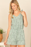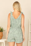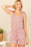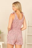SLEEVELESS TIE V-NECK ELASTIC WAIST LEOPARD ROMPER