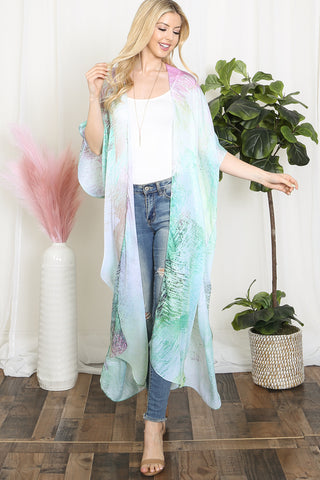 TIE DYE MULTICOLOR SPLATTER LINE PRINT OPEN FRONT LONG KIMONO