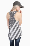 Be proud of your country with this Stars and Stripes Full body printed tank top. Front and back are printed with this distressed design of the US Flag.