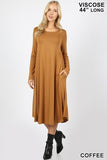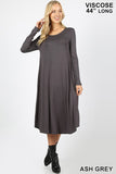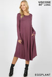 This casual yet fashionable long sleeve dress features a swing silhouette, on-seam pockets, and a round neckline. Its relaxed fit makes it perfect for an everyday outfit. Pair along with your favorite booties for a fall/winter ensemble.